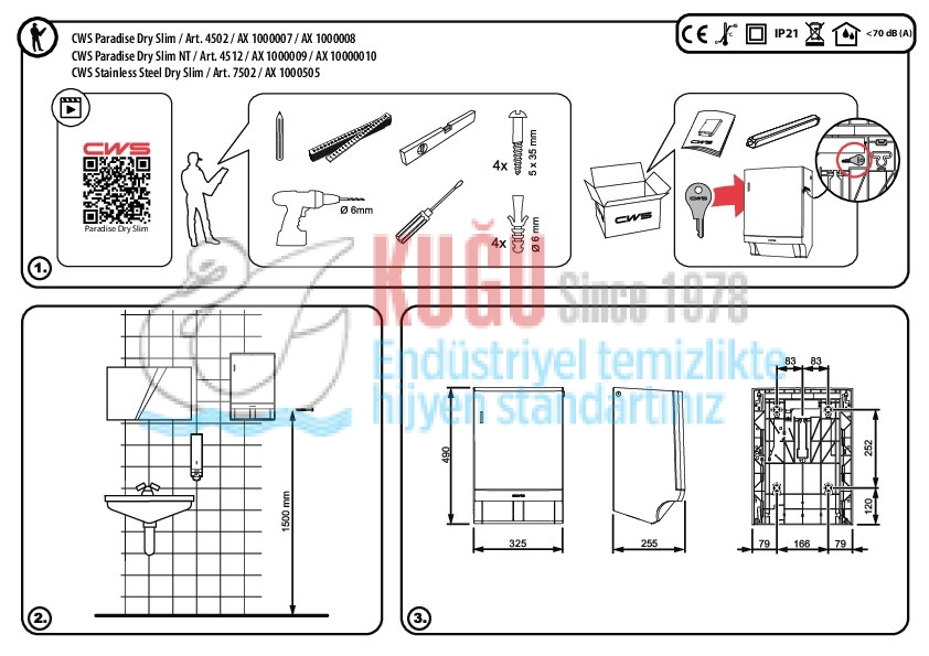 CWS Paradise Dry Slim pamuklu havlu dispenseri, tuvalette sürdürülebilir, optimize edilmiş el hijyeni anlamına gelir. Pamuklu havluluk “Blue Angel” çevre etiketi (RAL-UZ 77) ve hijyen sertifikasına layık görülmüştür. Pamuklu havluların kullanımı yalnızca kaynak tasarrufu sağlayan bir çözümü garanti etmekle kalmaz, aynı zamanda yüksek hijyen standardı ile hoş bir el kurumasını da garanti eder.
