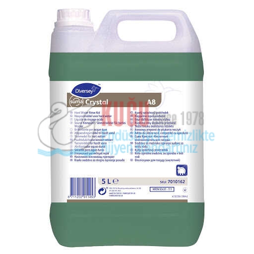 Suma Crystal A8 konsantre, asidik bir bulaşık parlatıcısıdır. Geniş bir aralıkta yer alan bulaşık makineleri için formüle edilmiştir. Formülündeki düşük köpük seviyeli yüzey aktiflerin yardımı ile yıkanan kapların yüzeyinde iz bırakmadan kurumaya yardımcı ve köpük kontrolünde mükemmeldir. Su sertliğinin yarattığı kireçlenmeyi önleyen maddeler de içerir. Böylece orta ve sert sularda makineyi kireçlenmekten korur.