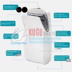 Hepafiltreli Su Hazneli ve Stand by LED Işıklı 220-240 V Sensörlü ve Fotoselli Yeni Nesil El Kurutma Makinesi
